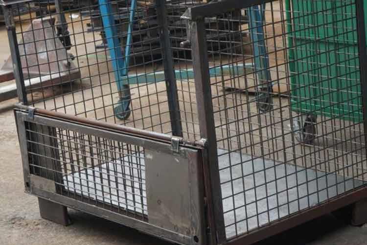 铁框周转箱适用于零散物料的立体存储使用,四门底座可根据物料的大小选择网片或者钢板,防止物料遗落。同时采用灵巧的开门设计,在堆叠时可方便存取;配合叉车或航吊可互相堆垛形成立体的存储能力,提高空间利用率。其在该周转箱底座增加脚轮,方便人工在生产不同工序间转移物料。