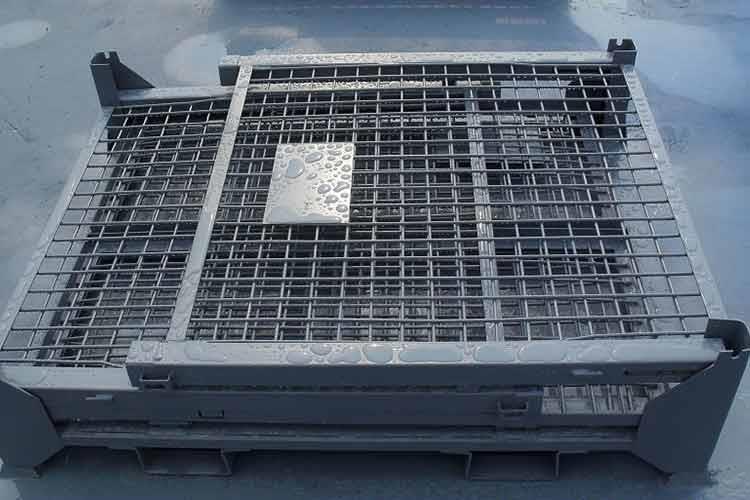 仓储笼主要材料为低碳铁丝、槽钢、热轧钢板等。仓储笼的外形感觉轻巧,笼体除底框外皆有铁丝碰焊成的网片组合而成,网片与网片、网片与底框靠小连接件连接,可活动。仓储笼空笼时可折叠存放,充分利用空间。仓储笼前面可打开,在堆垛后能取物,堆垛时承重在侧面的网片上。仓储笼目前已完全具备可堆垛性、可折叠性及可搬运性,日益成为物流流通的一种重要的标准物流容器。